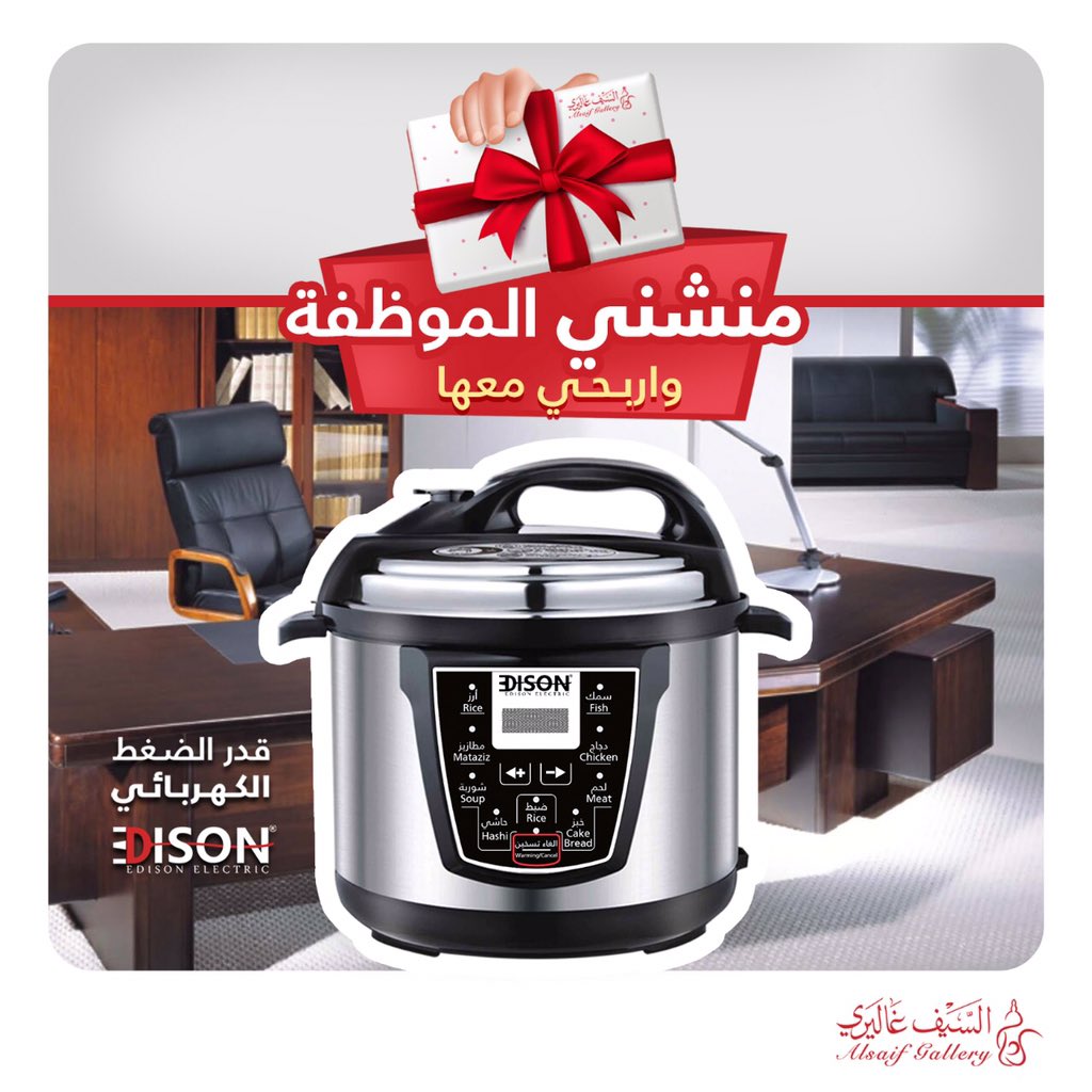 ا لـ سـ يـ ف غـ ا لـ يـ ر ي Twitterissa متوفر الآن في أغلب فروعنا قدر الضغط الكهربائي من أديسون بأحجام متعددة تتناسب مع احتياجاتكم المختلفة وبأفضل المواصفات والوظائف مع